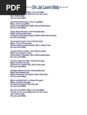 Om Jai Laxmi Mata Aarti Lyrics - Uraananda samata, paap uttar jata.