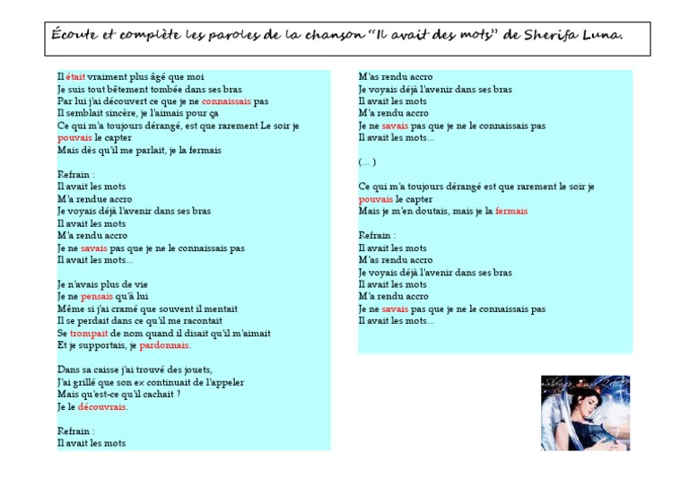 Sheryfa Luna Il Avait Les Mots Paroles / Pagesbusinessespublic & government servicebecause i'love u/لأني أحبك/parce que je t'aimevideossheryfa luna il avait les mots paroles.